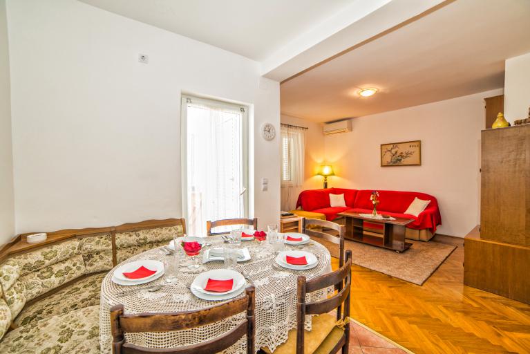 Apartmani Jasmina - Crikvenica. Apartman za 6+2 osobe smješten je na prvom katu i potkrovlju, sastoji se od tri spavaće sobe, dvije kupaonice, dnevne sobe, kuhinje i balkona. Ima osigurano parkirno mjesto, mogućnost grila, tv, internet, klima. U mirnom dijelu grada Crikvenice u blizini centra i plaža.